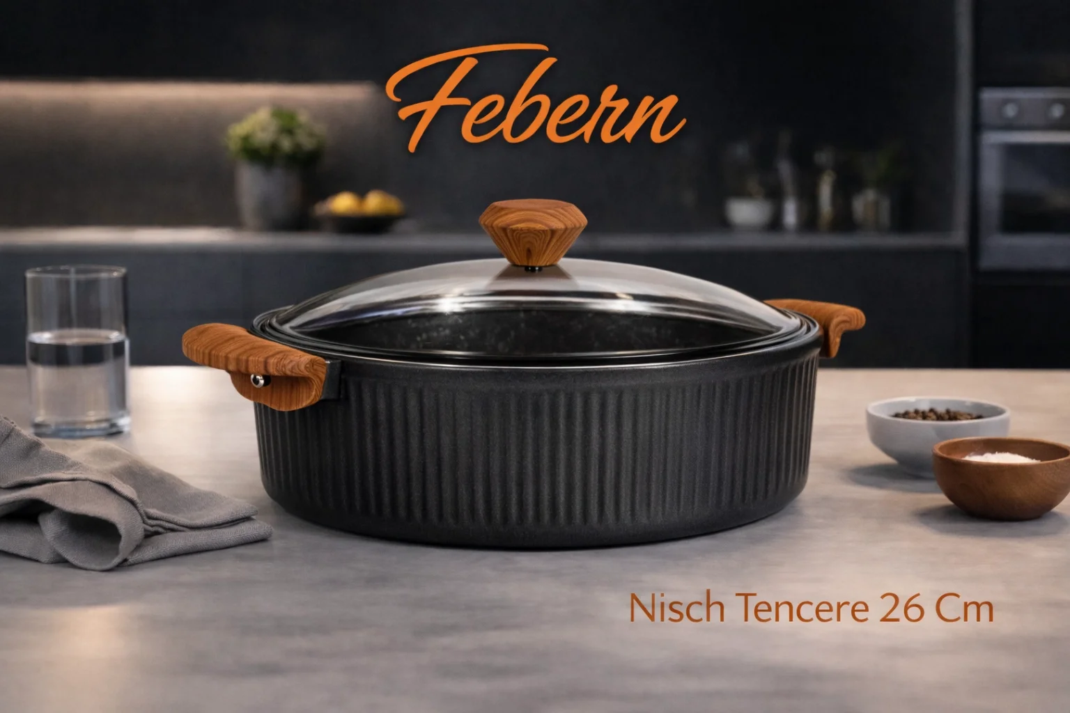 Mutfakta minimalist ve şık bir çizgi yakalamak isteyenler için tasarlanan Febern Premium Bio Granit Alüminyum Döküm Nisch Tencere, asil siyah rengi ve sofistike koyu ahşap kulpuyla mutfağınıza modern bir zarafet katıyor. Bu tencereyle yemek yapmak sadece bir zorunluluk değil, bir sanata dönüşüyor; her detayında kalite ve incelik hissediliyor.