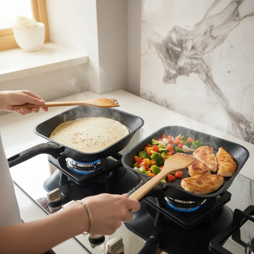 - Çok Yönlü Kullanım, Tam Takım Çözüm: Bu set, farklı boyutlardaki tavalarıyla kahvaltıdan akşam yemeğine kadar tüm ihtiyaçlarınıza cevap verir. Omlet, sote, ızgara, kızartma... Hayal gücünüzle sınırlı!